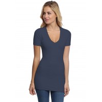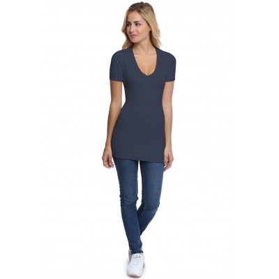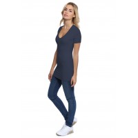 T-shirt long col V devant et dos, manches courtes, doublé devant et dos.