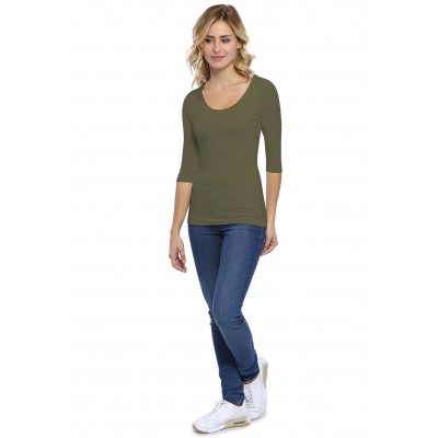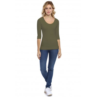 T-shirt col rond doublé devant manches 3-4 en modal ZAZA04