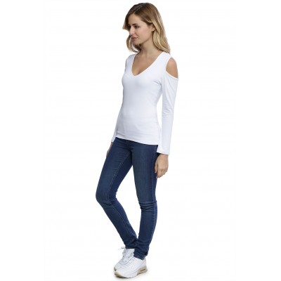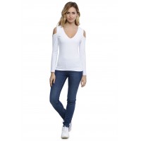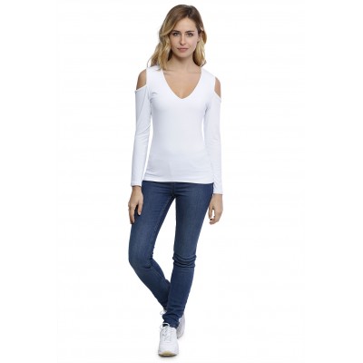 T-shirt col V épaules nues manches longues en modal ALBA05