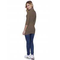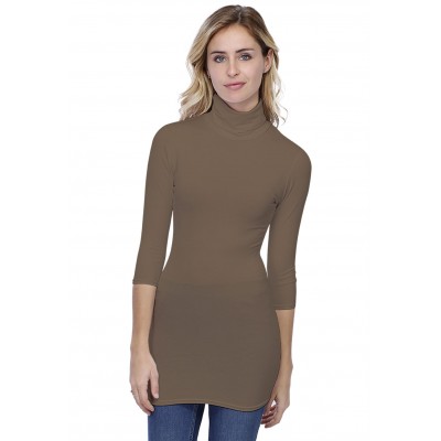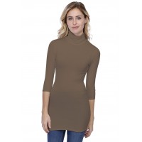 Tee-shirt long col roulé, manches 3/4.