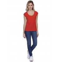T-shirt coupe droite, col rond, doublé devant sous poitrine, manches capes