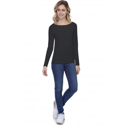T-shirt coupe droite, col bateau, doublé devant sous poitrine, manches longues.