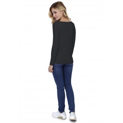 T-shirt coupe droite, col V doublé devant sous poitrine, manches longues
